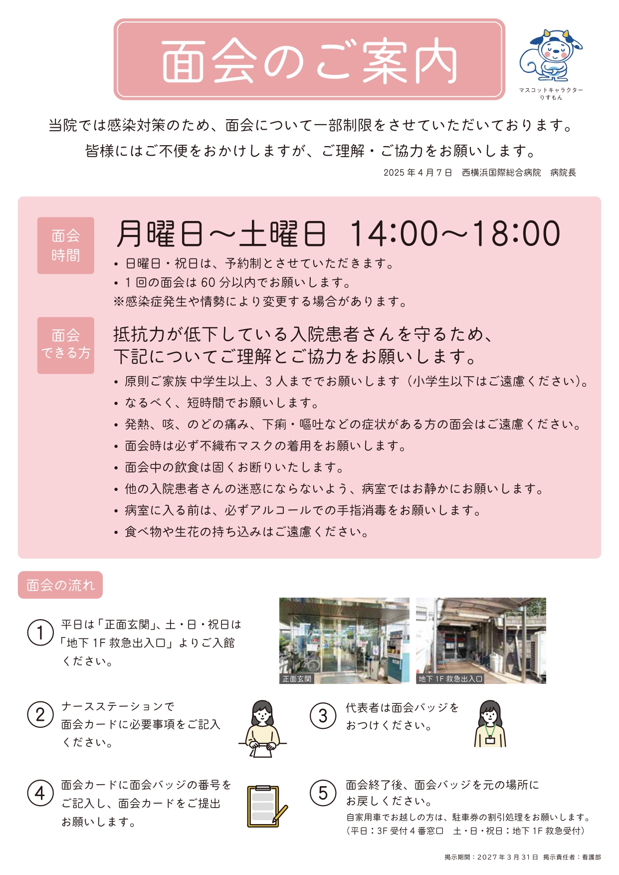 2025年4月5日 / 最終更新日 : 2026年1月10日 nishiyokohama_admin ニュース 【重要】4月7日(月)~面会時間 〈お問い合わせ先〉代表 TEL.045-871-8855