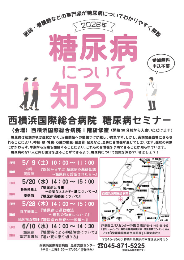 下記日程にて、患者さん・ご家族を対象とした糖尿病セミナーを開催します。