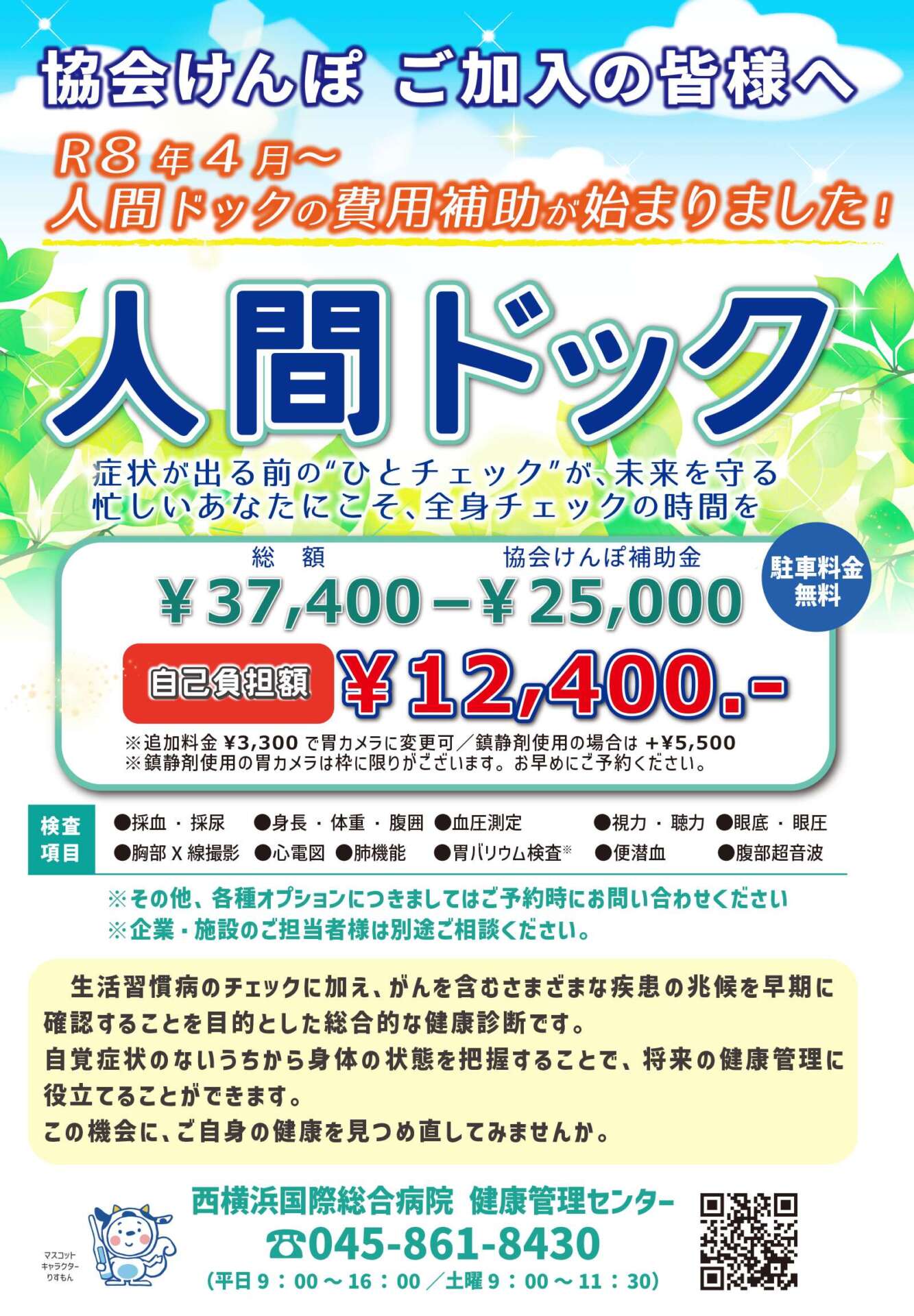 ご不明な点や詳細につきましては、健診センターまで(TEL:045-861-8430)お問い合わせください。